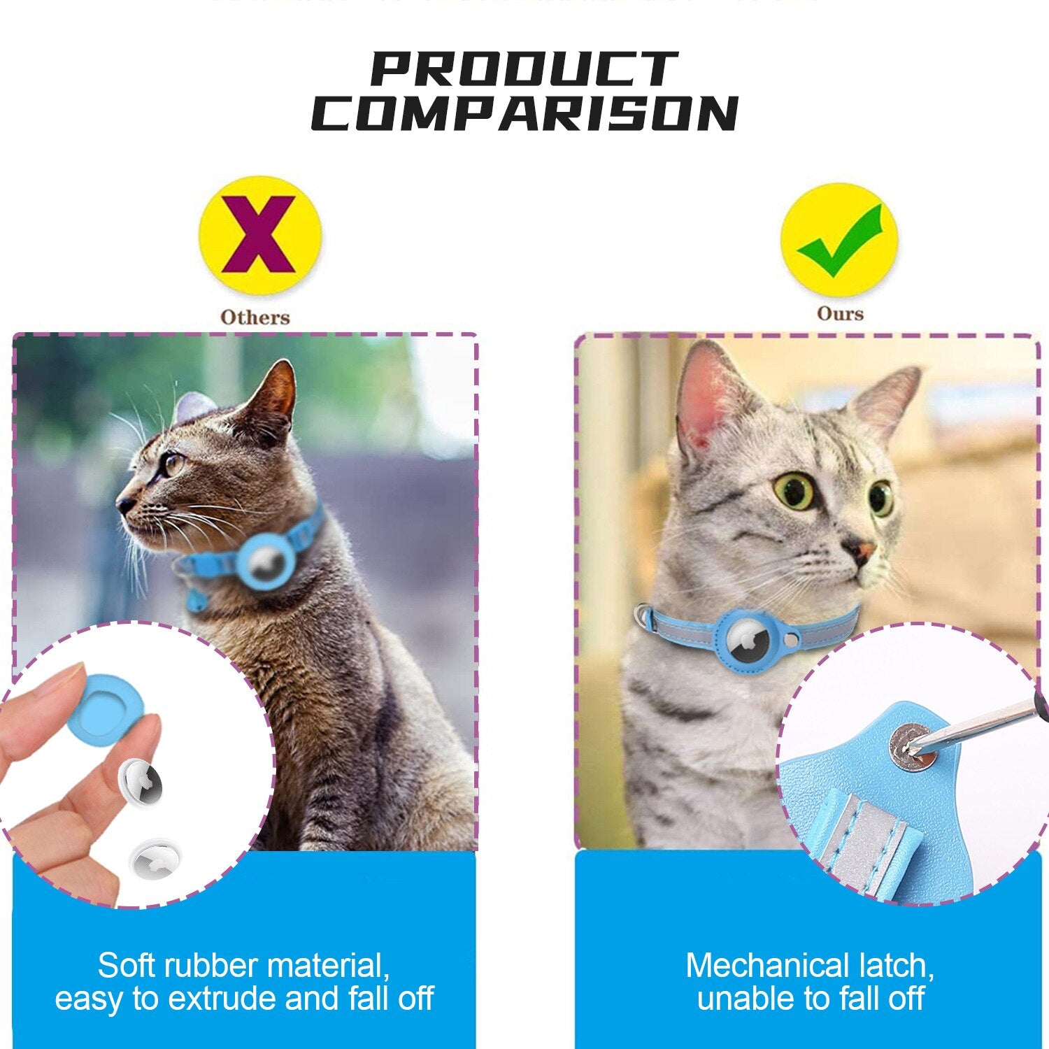 Very secure. The PU holder keeps the AirTag tightly in place so it won’t fall out, even if your cat is active.
